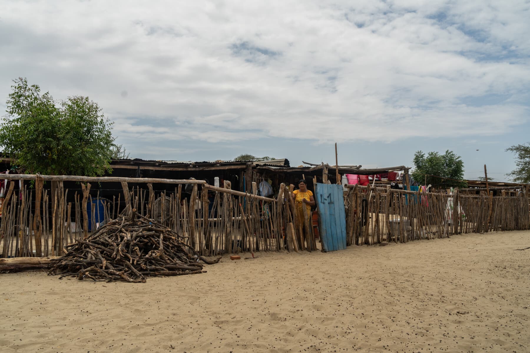 “Ahorita, en este solazo, qué lindo sería tomarse un vaso de agua helada”, dice Hilda mientras se asoma tras la empalizada que protege su pequeña casa de madera. Levantada en una gran loma de arena, entre los algarrobos, el viento, la duna, y el fuego invisible del calor. Este pueblo se llama Los Rufinos, queda en Tambogrande.