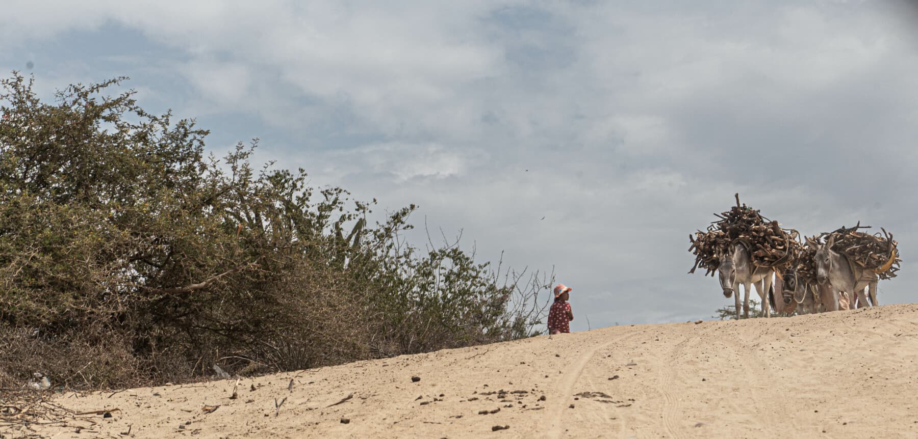 Es mediodía y la luz solar es furiosa, quemando por todos lados. Aun así, Hilda camina sin zapatos en la tierra ardiente. “El sol ha achicharrado mis baquetitas”. Hilda habla en diminutivos o alarga las palabras como todas las mujeres y hombres del Medio Piura. Permanece largo tiempo de pie, sin el amparo de la sombra, mientras narra su historia. Es fuerte, hay mucha resolución en ella, va de un lado a otro juntando leña, por momentos interrumpe su marcha para remover un montículo donde arde pausadamente el tronco ennegrecido de un algarrobo. Un par de burros, que le ayudan a llevar el agua que recolecta para tres días, dormitan envueltos en el espeso humo que despiden los restos del árbol. Sin duda qué no daríamos ahora por un vaso de agua helada, una gaseosa o simplemente abrir el caño y lavarnos la cara. Todo eso es imposible aquí. Hilda lo sabe, por ello tal vez la urgencia de contar todo de golpe.
