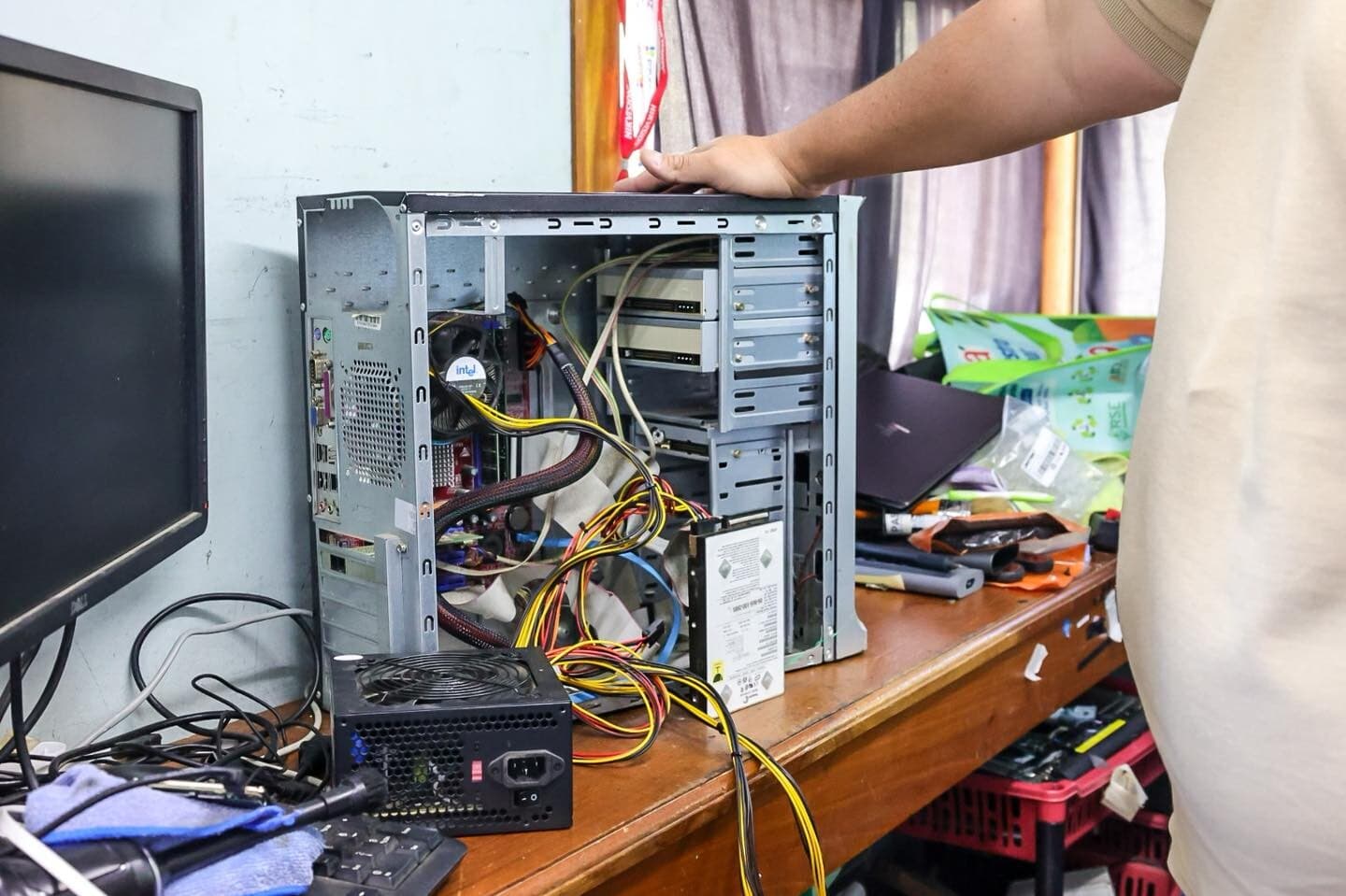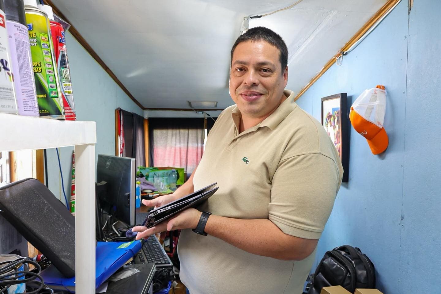 Su taller se ha convertido en un espacio donde se reparan computadores y otros componentes electrónicos para que puedan ser reutilizados.