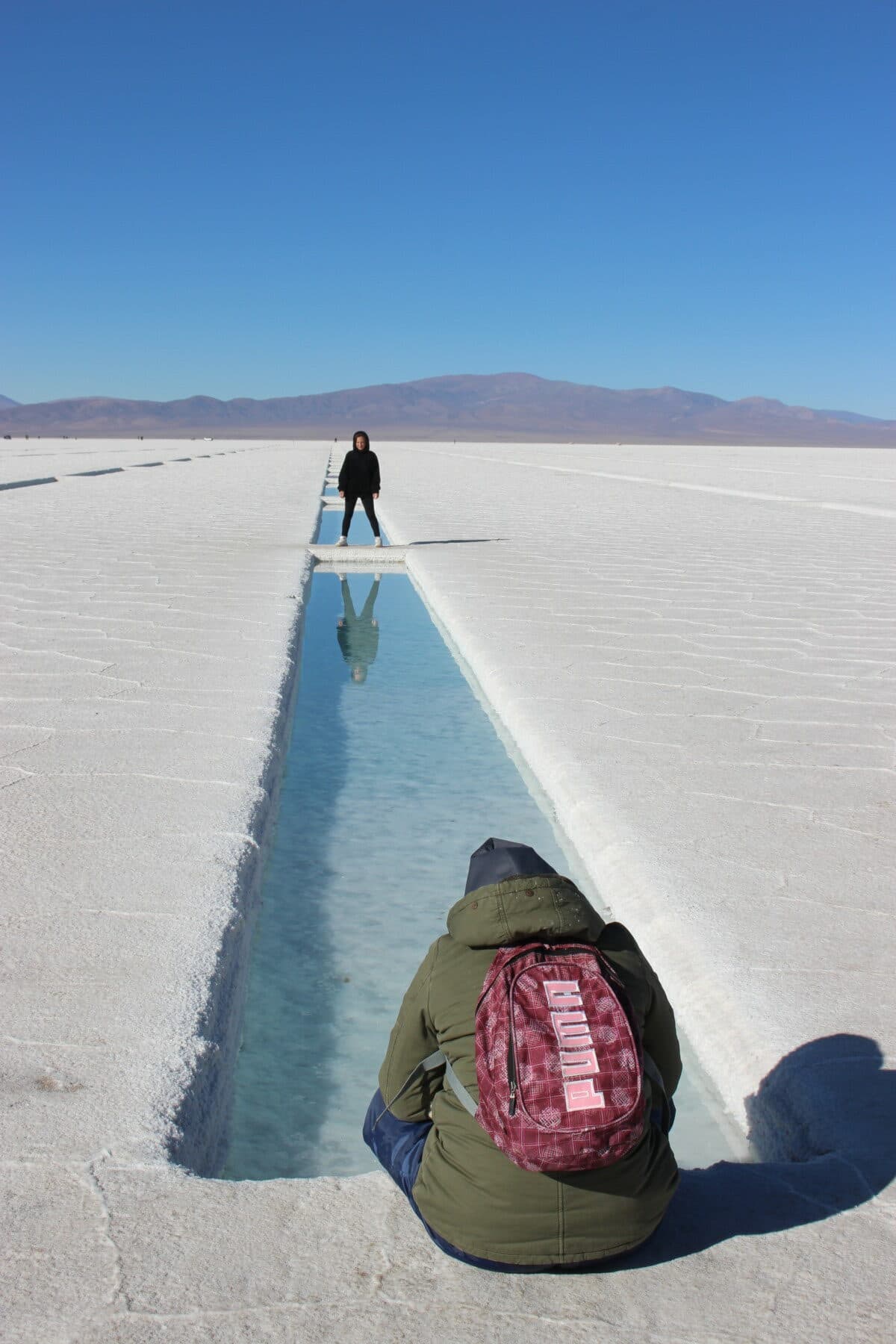 El sitio es uno de los paseos más conocidos de Argentina, y miles de personas viajan a tomarse fotos en el blanco humedal que difumina las perspectivas. Al bajar al gran manto blanco un cartel advierte: “Salinas Grandes es una de las 7 maravillas de Argentina. Las comunidades originarias decimos no al litio. Sí al agua y a la vida en nuestros territorios”.