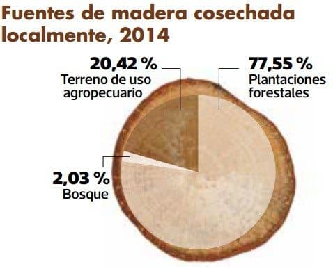 En Costa Rica la mayoría de madera se obtiene de plantaciones forestales.