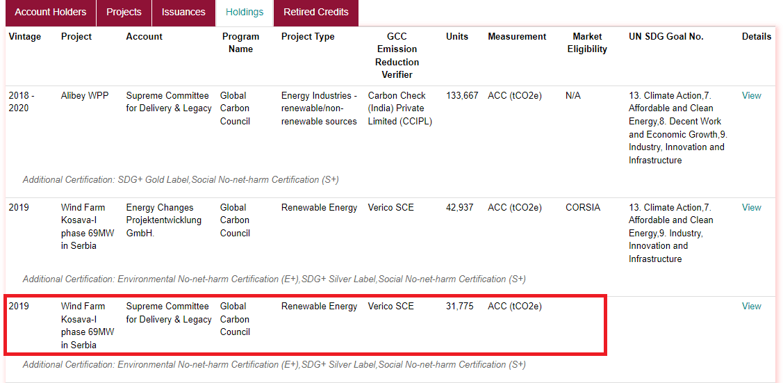 Sin embargo, pese al informe técnico, este Comité Supremo siguió comprando créditos dudosos, según muestran los registros del GCC. En este caso, la organización catarí adquirió reducciones de emisiones de una granja eólica en Serbia.