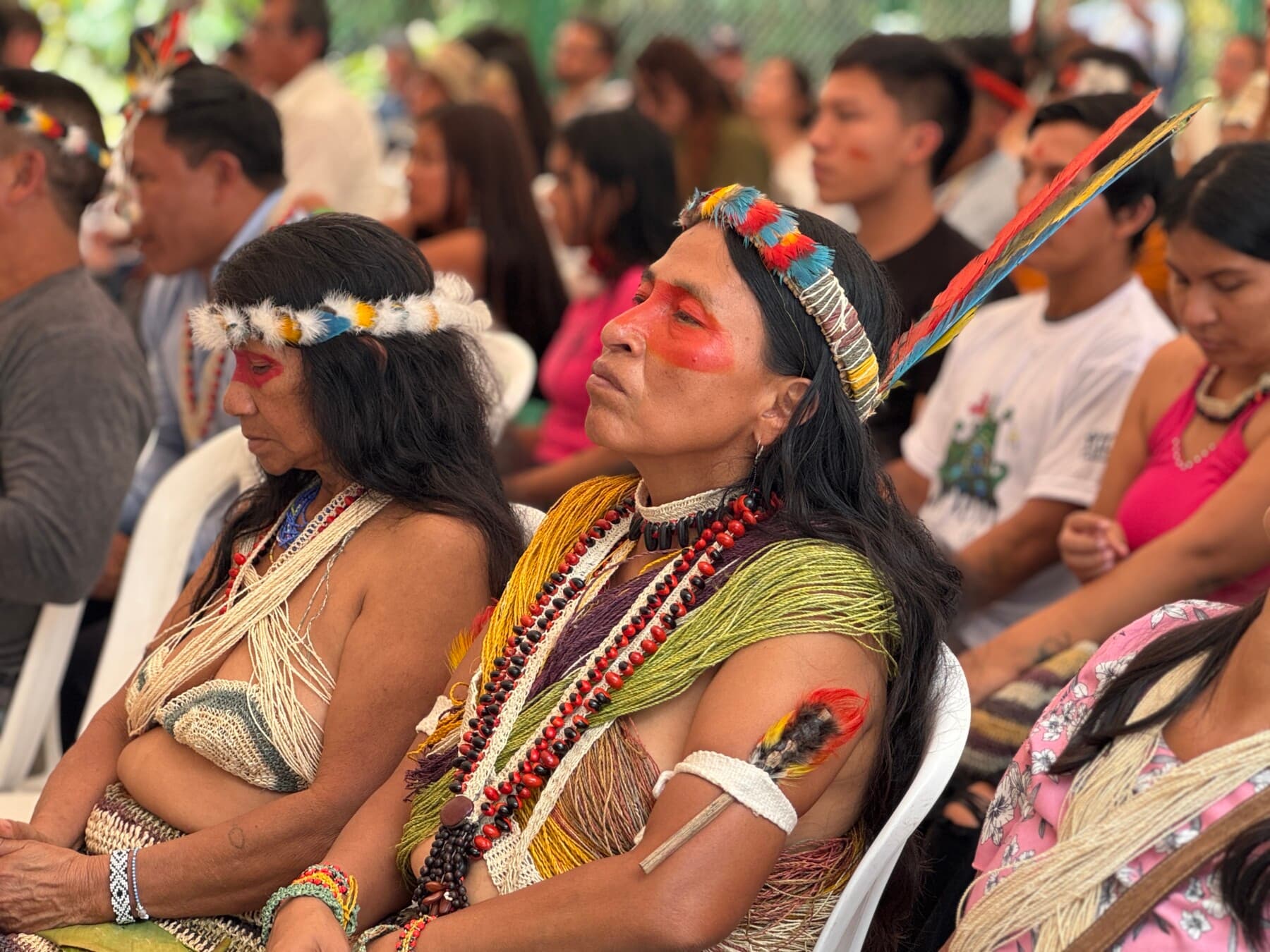 Al día siguiente, un grupo de mujeres Waorani dio la bienvenida a los más de 400 asistentes que llegaron a las jornadas de trabajo de la Cumbre Internacional por el Yasuní, en Puyo, la capital de la provincia amazónica de Pastaza.